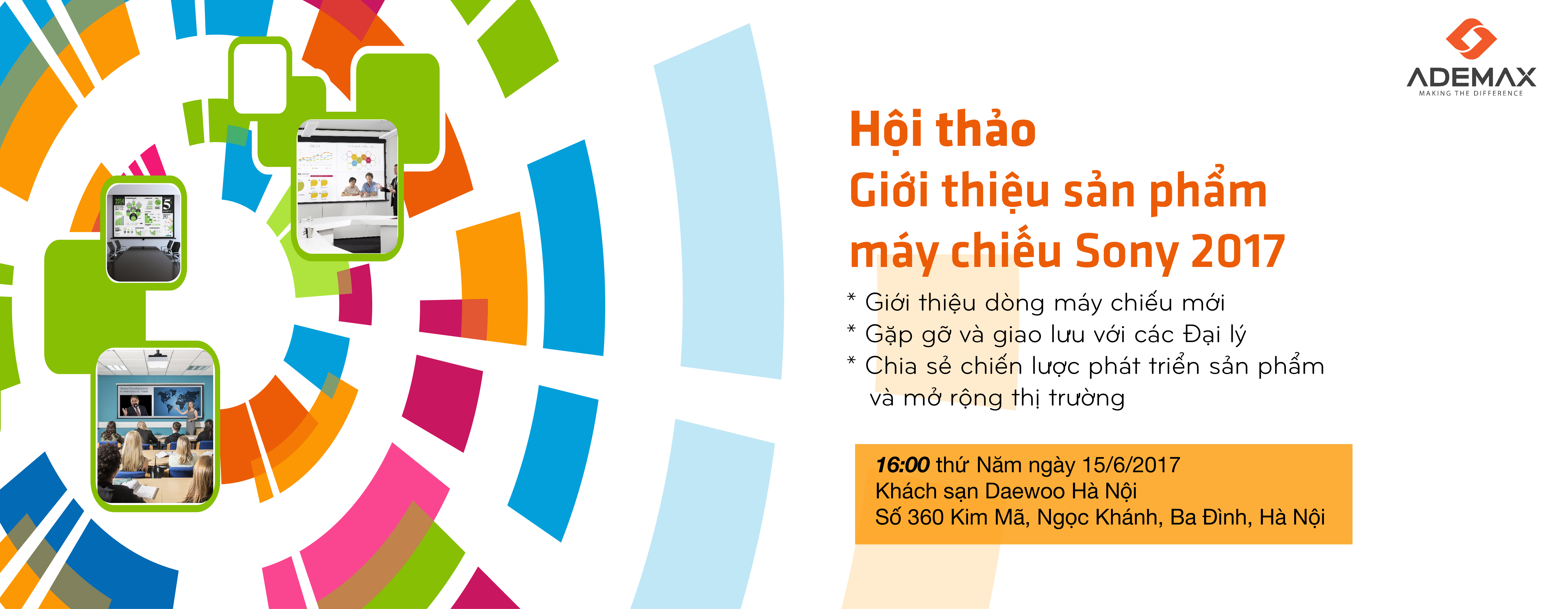 Nhằm mục giới thiệu các dòng sản phẩm Máy chiếu mới và gặp gỡ các Đại lý, ngày 15/6, SONY kết hợp với ADEMAX tổ chức buổi hội thảo Máy chiếu Sony 2017.