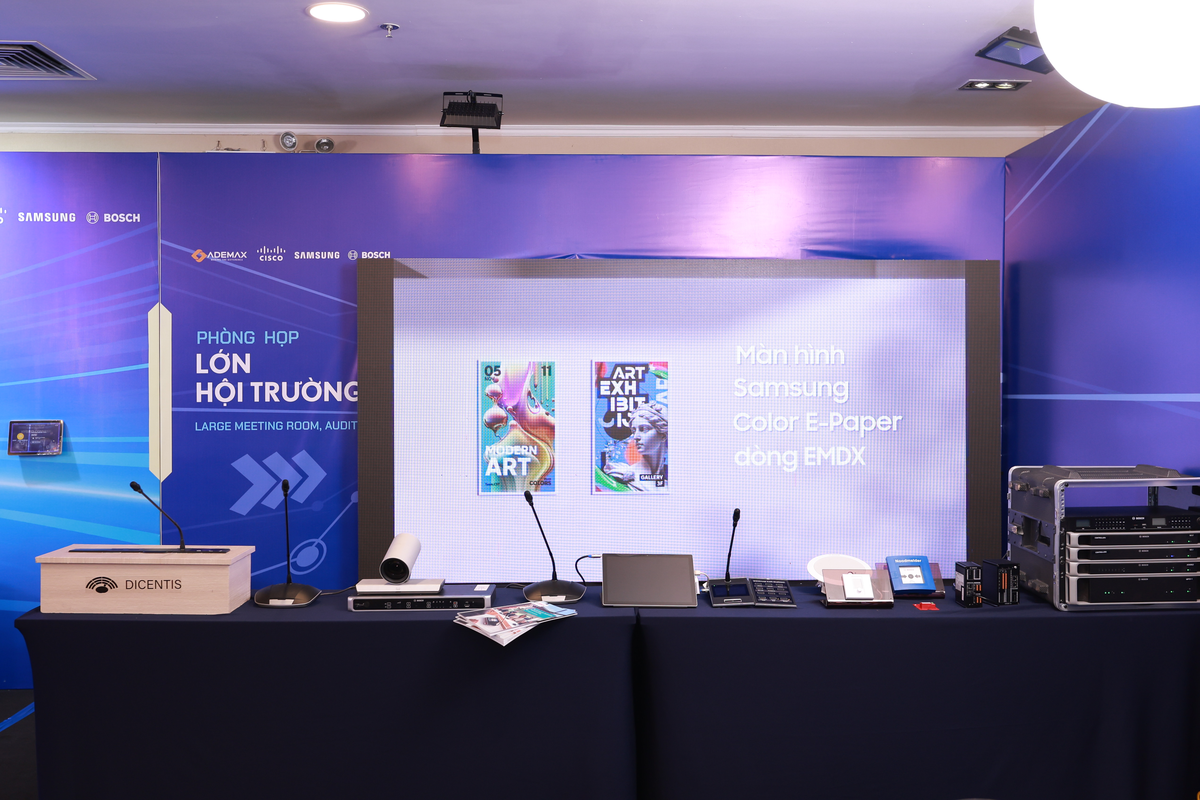 - 03 thương hiệu công nghệ toàn cầu đồng hành: Samsung, Cisco, Bosch cùng Ademax kiến tạo không gian hội nghị thế hệ mới.